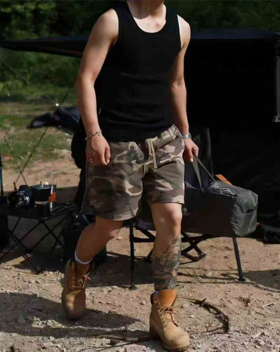美式复古迷彩短裤夏季高街口袋直筒潮牌宽松百搭短裤