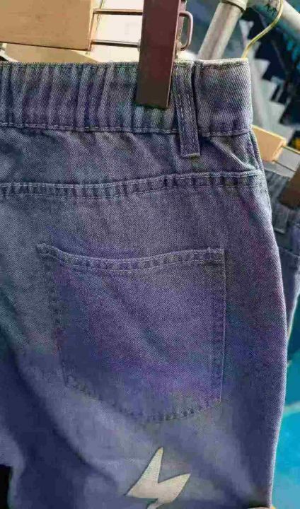 水洗棉直简微喇叭长裤松紧腰美式潮牌宽松闪电皮刺绣牛仔裤,488件,S-2XL,男女同款,独立包装,全清13.8元,分货+0.5