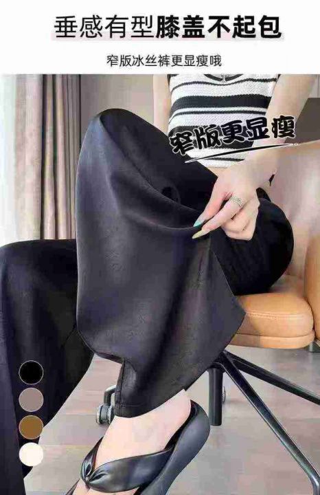 ☕️新中式醋酸缎面裤子女夏季新款高腰垂感直筒国风冰...
