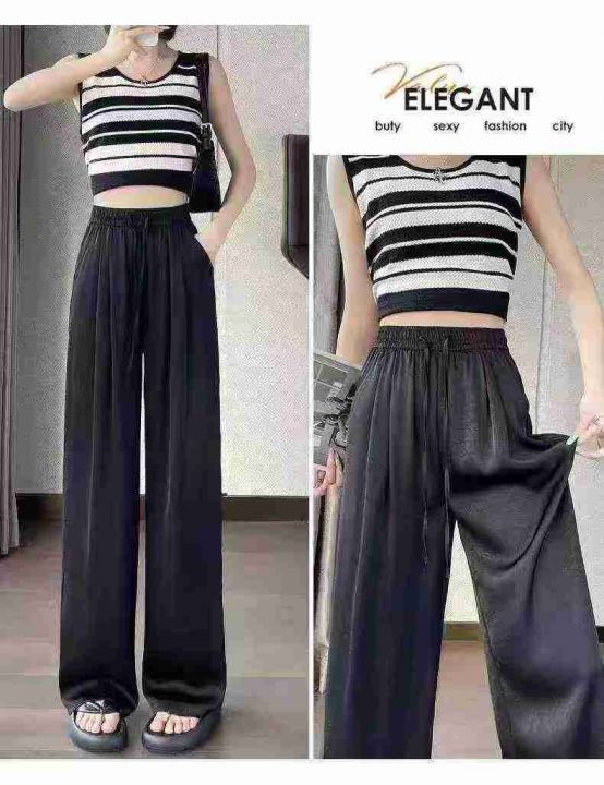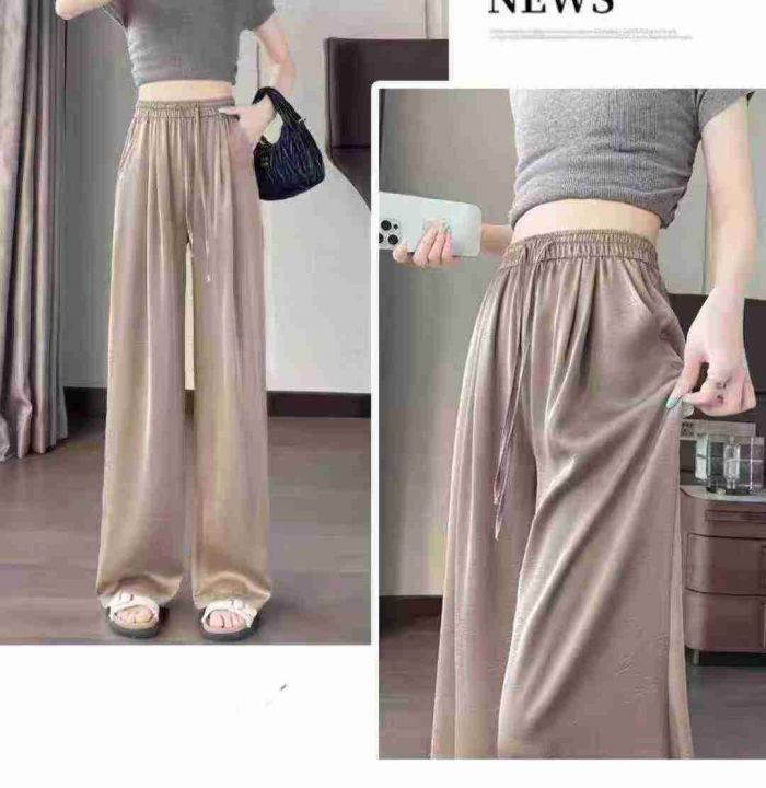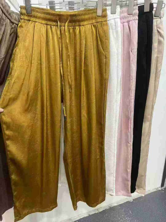 ☕️新中式醋酸缎面裤子女夏季新款高腰垂感直筒国风冰丝阔腿裤667条全清12.8元 分货13.8元 码数S到XXL ,单款6色,正品独立包装,一体腰裤头包边,裤子都有口袋[庆祝][庆祝][庆祝]