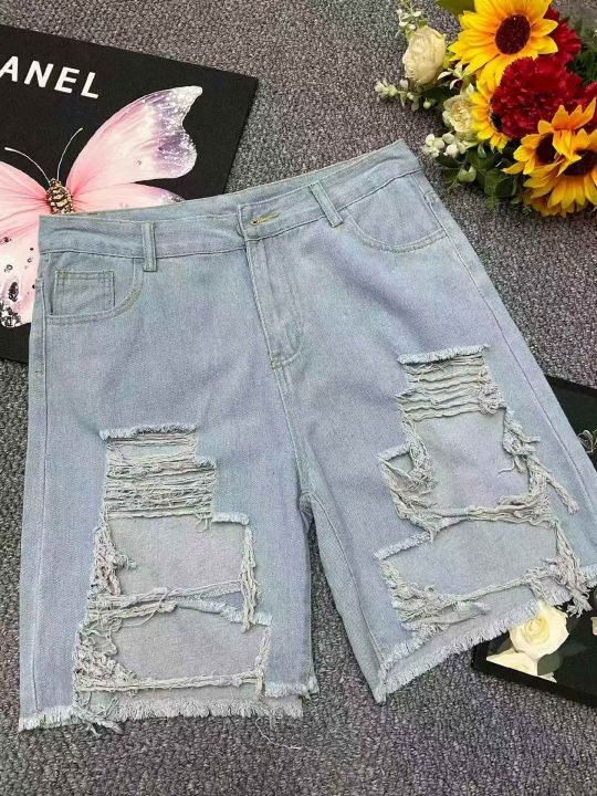 夏季新款男女同款破洞设计款阔腿牛仔短裤,独立包装,...