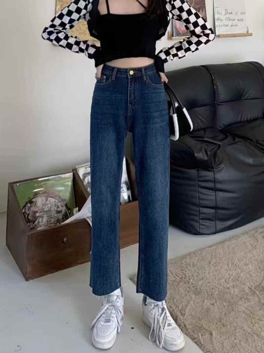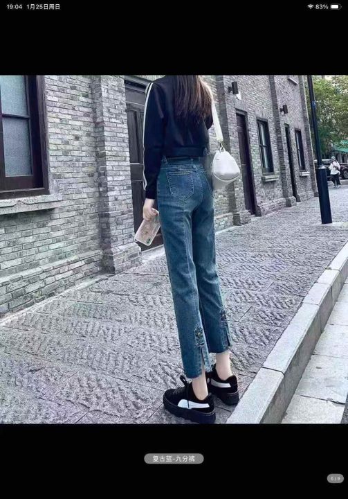 直筒牛仔裤女春秋时尚新款小个子高腰显瘦开叉烟管裤子潮260件,独立包装带吊牌,尺码S~5XL,全清福利价9.8元,分货➕1
