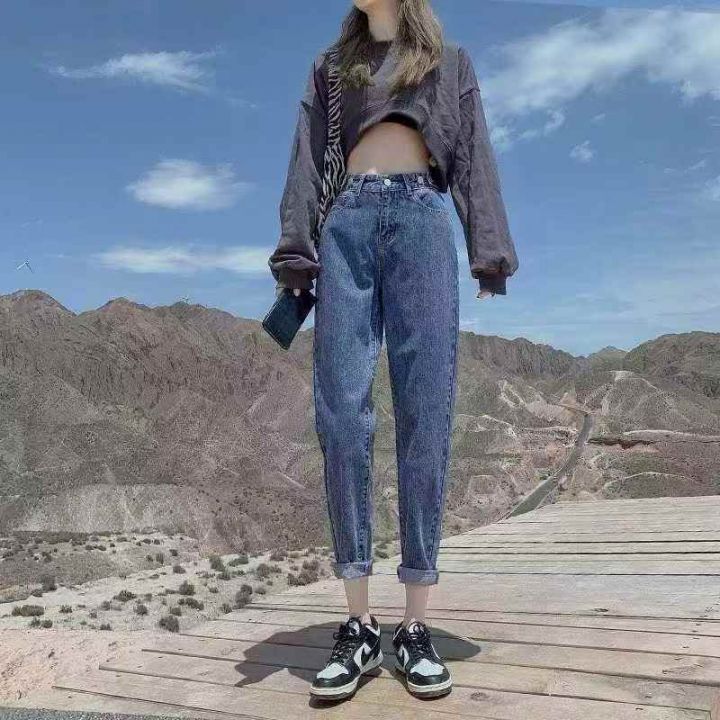 哈伦牛仔裤女春秋新款高腰显瘦小个子老爹裤子120件,独立包装带吊牌,尺码M~5XL全清福利价9.8元