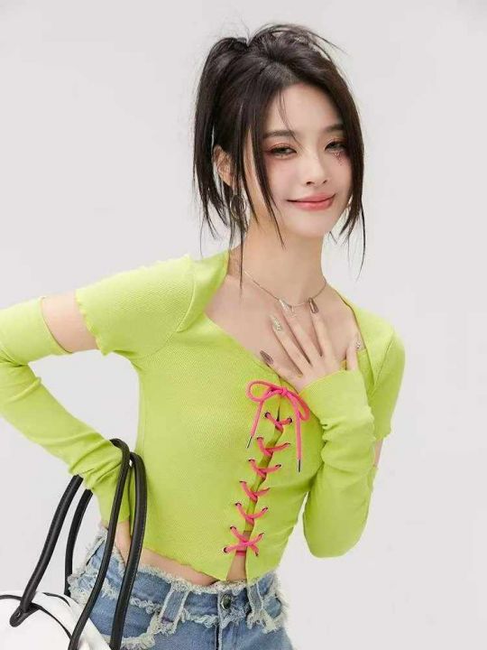 春夏季新款辣妹性感绑带设计感独特别致针织小衫,独立...