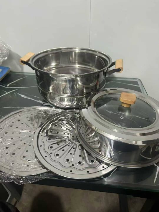32特厚带磁、精抛光、组合盖木柄双层蒸锅,淘宝盒包装...