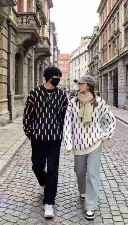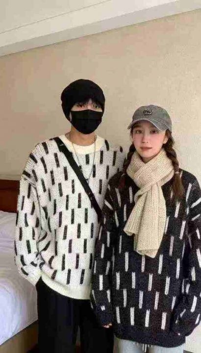 秋冬新款宽松提花大板加厚圆领套头毛衣,独立包装,均...