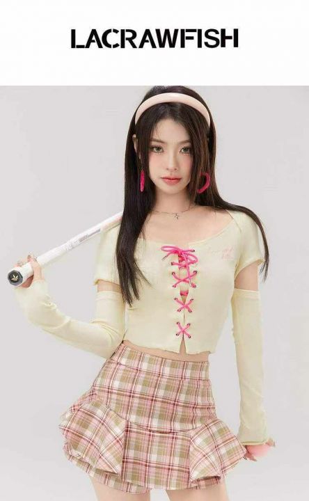 春夏季新款辣妹性感绑带设计感独特别致针织小衫,独立...