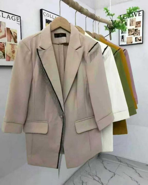 品牌白领高级中袖西装,清18.8珍珠单扣流梳款式,双前...