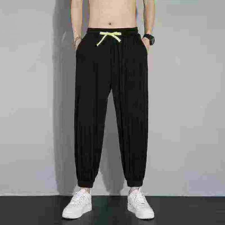 全清6.5元,6538条\'裤子夏季男休闲薄款韩版ins潮牌冰丝条纹运动大码弹力宽...