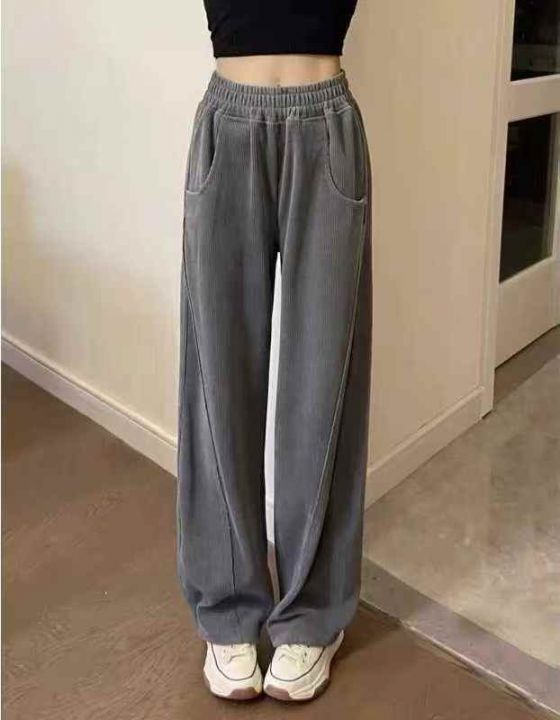 美式复古运动裤女高腰显瘦窄版阔腿裤卫裤休闲裤