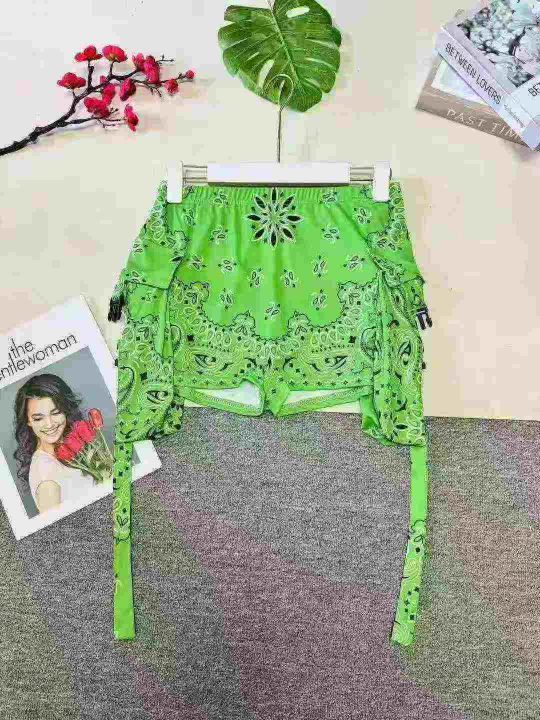 欧美时尚女装印花工装短裤 ,整款多色,数量300条左右,码数S-2XL,两侧边锁扣大口袋设计,品质好,有独立包装。
