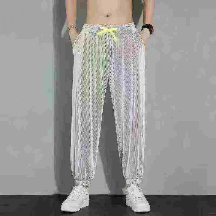 全清6.5元,6538条\'裤子夏季男休闲薄款韩版ins潮牌冰丝条纹运动大码弹力宽松哈伦裤\'分货➕0.5