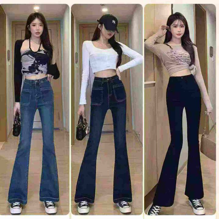 春秋新款高腰弹力修身显瘦洗水棉微喇叭牛仔裤,独立包...