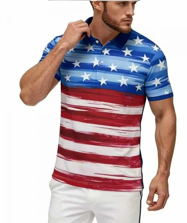 夏季新款跨境爆款3D打印户外街头国旗国徽短袖polo衫,独立包装,码数M-3XL...