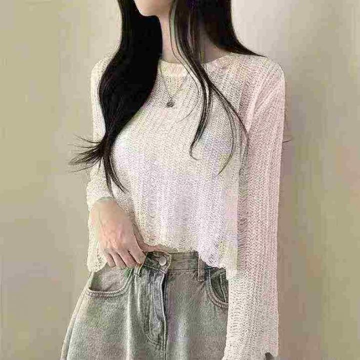 新款镂空上衣配吊带的小外搭韩版纯色宽松设计感长袖针...