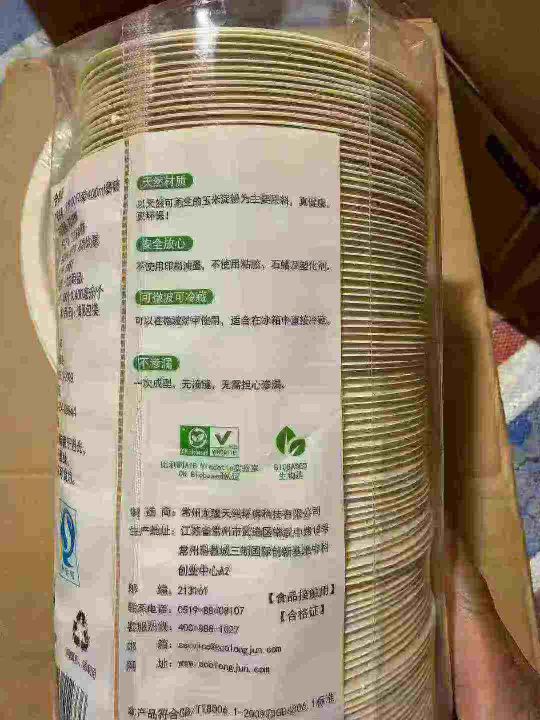 环保天然材质的一次性餐碗,400毫升的口径14厘米,一箱9包一包100个,可放...