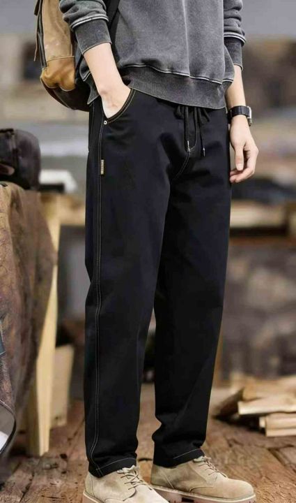 春秋新款男士宽松百搭松紧腰牛仔长裤,独立包装带吊牌...