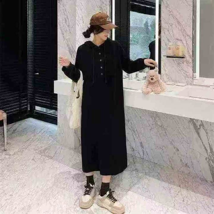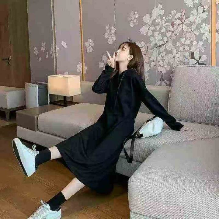 网红连帽卫衣裙韩版时尚百搭宽松长款连衣裙,独立包装,单色单款,码数M-L,M码裙长107厘米,数量117条,货号1213#23