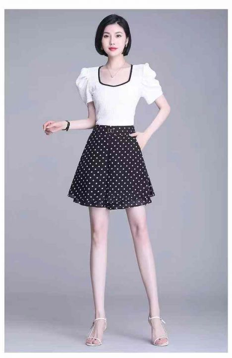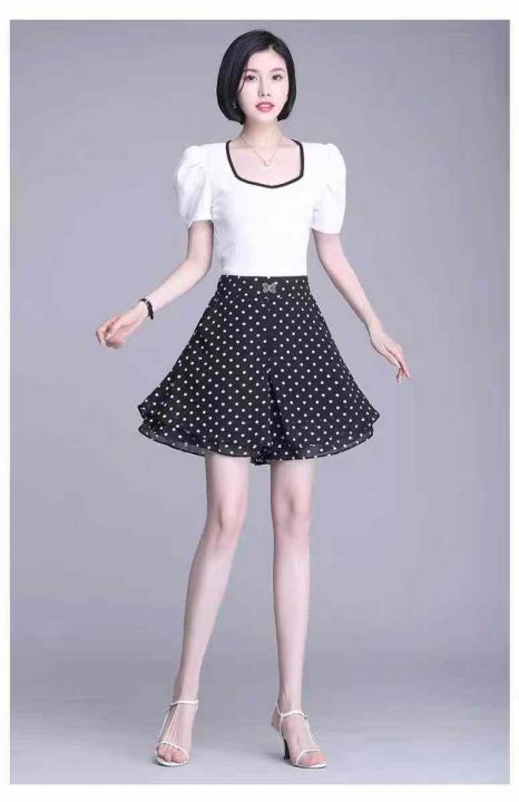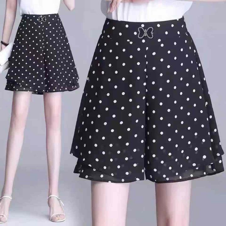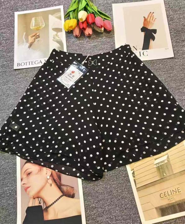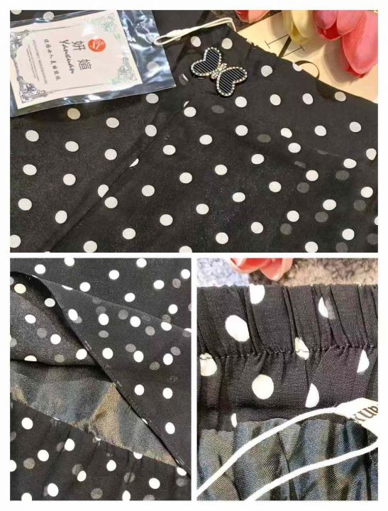 高腰气质百搭雪纺A字垂感波点裙裤,[爱心]400件左右,码数S-4XL,穿80-150斤,万佳档口货,原包装️无瑕疵,[666]实体店品质,分货加一