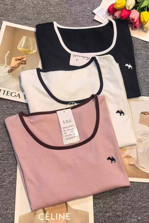 腾仓库捡漏:5.8一件品牌纯棉撞色刺绣圆领修身显瘦短...