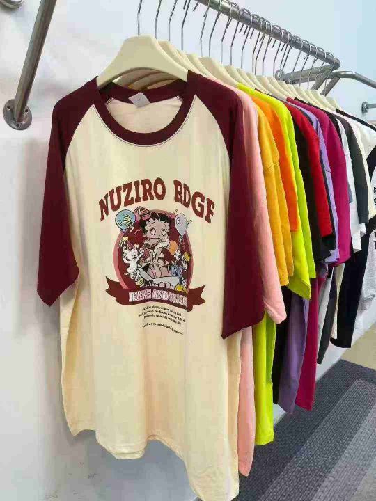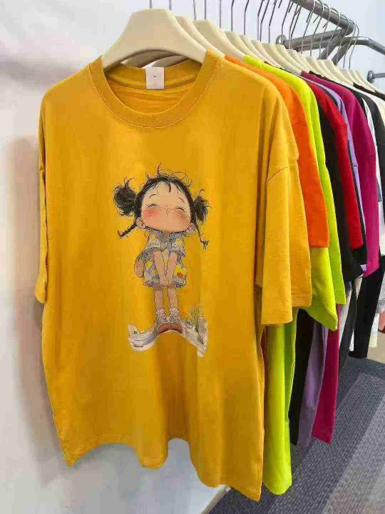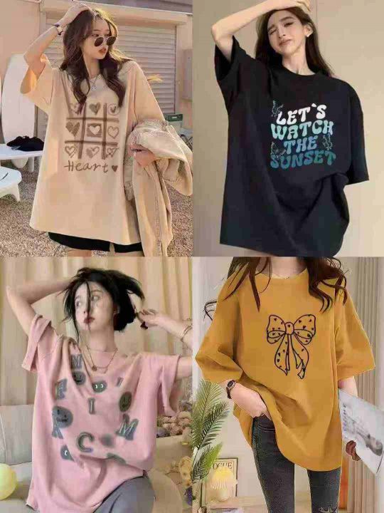 3.8元打包,卡通印花中长款休闲T恤女夏季新款薄衫宽松长袖上衣,独立包装,...