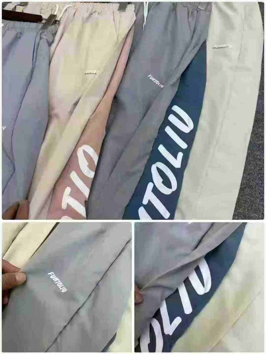 423条,港风休闲裤女夏季新款宽松阔腿裤薄款抽绳束脚拼接学生运动裤,独立包装,码数S-3XL,全清7.8元$,分货+0.5