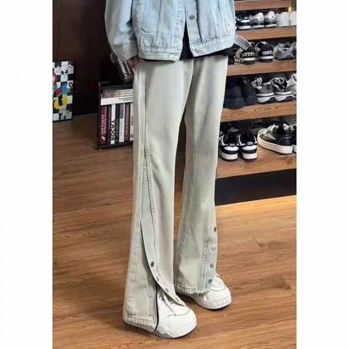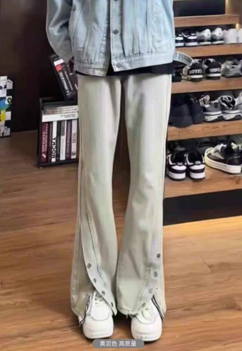 春秋新款复古黄泥色男士设计款微喇叭牛仔裤,独立包装...