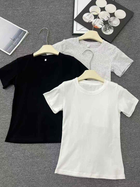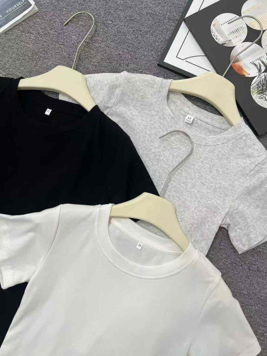 ☕️纯棉韩系正肩圆领纯色短袖T恤女夏季收腰修身设计感短款上衣500件全清7.8元,分货8.8元,单款3个色,独立包装[庆祝][庆祝][庆祝]