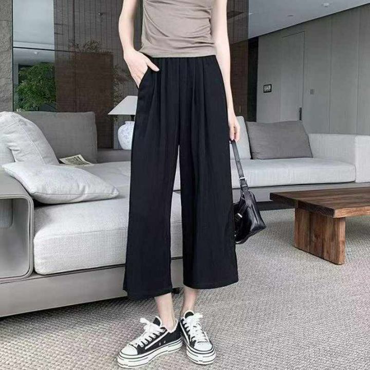 夏季新款黑色微闪胖MM韩版宽松显瘦高腰直筒阔腿休闲裤,独立包装,2款单色...