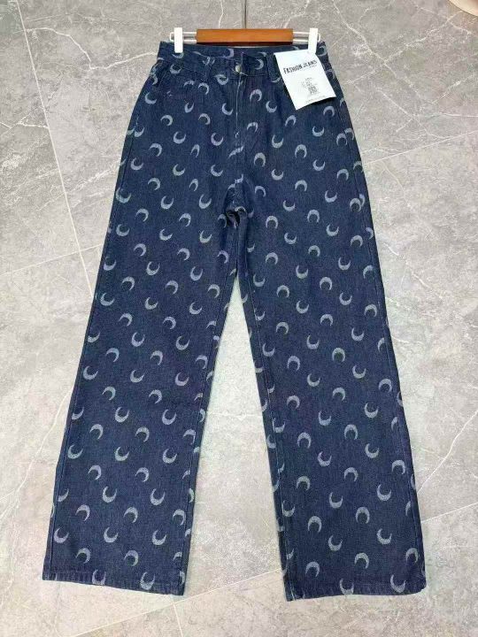 茵曼秋季新款爆款印花设计感牛仔裤洋气直筒阔腿宽松休闲裤,独立包装,S -2 xL码,3 90件左右,全清12.8块,分货加一