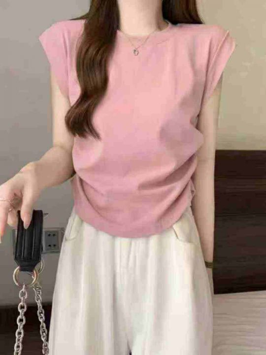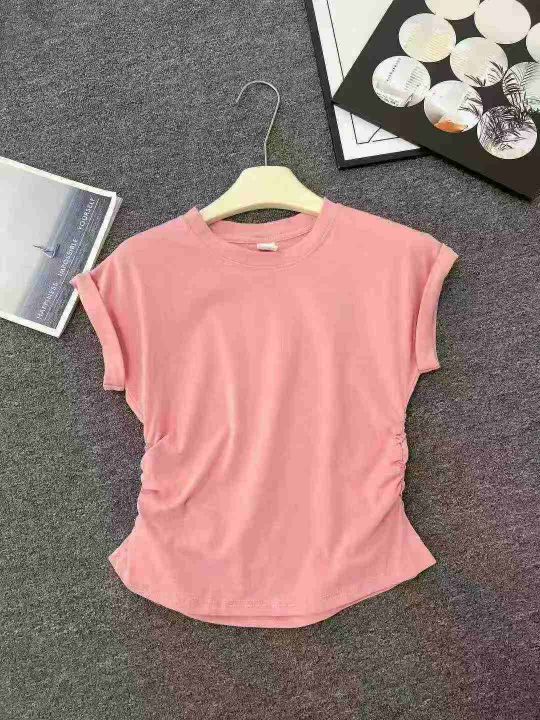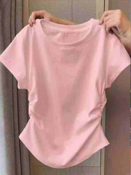 ☕️粉色纯棉飞飞袖收腰短袖T恤女夏季甜美设计感小众别致褶皱短上衣60件全清7.8元,S到XXL码数,单款粉色,独立包装[庆祝][庆祝][庆祝]