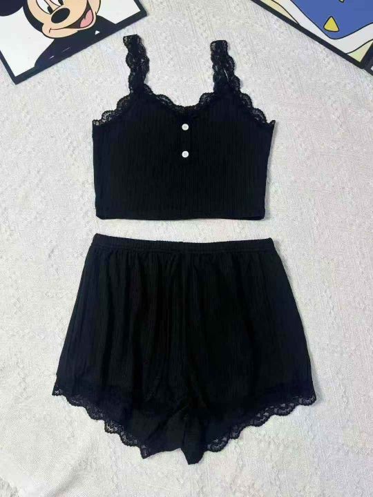 欧美辣妹时尚性感吊带上衣➕短裤睡衣家居服2件套装 部...