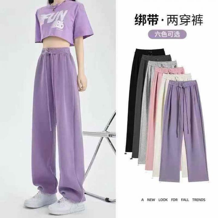 时尚潮流绑带阔腿显瘦运动裤子,独立包装,整款4色,大货灰粉为主,XL码裤长95厘米,码数M-2XL,数量1066条,分货加1,货号114#17