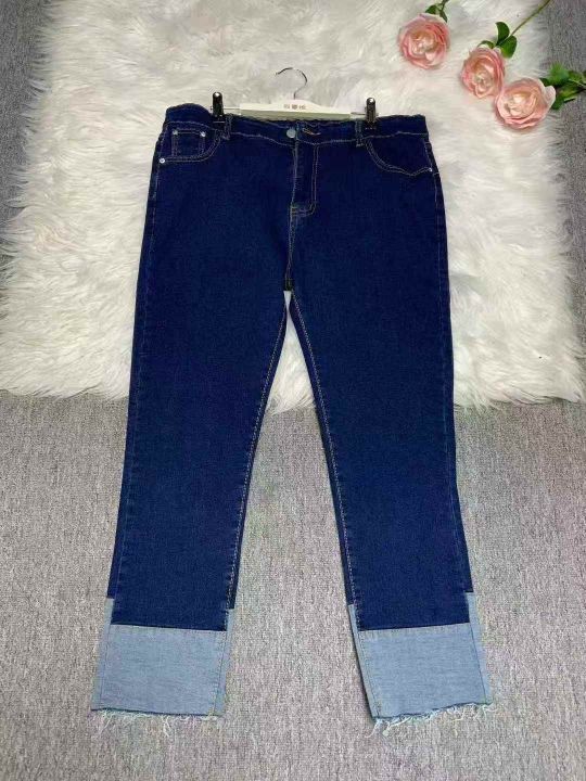 深蓝色牛仔裤春秋新款高腰显瘦弹力卷边cec翻边直筒烟管裤172件,独立包装带...