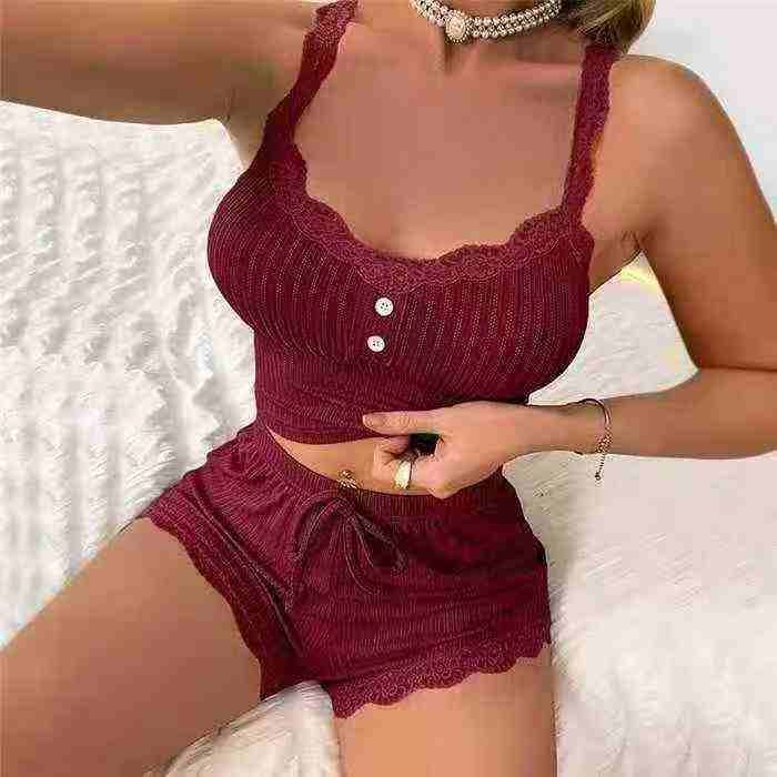 欧美辣妹时尚性感吊带上衣➕短裤睡衣家居服2件套装 部...