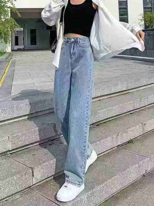 新款爆款高腰牛仔裤女大码宽松直筒裤阔腿裤220件,图...