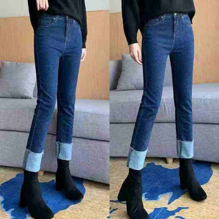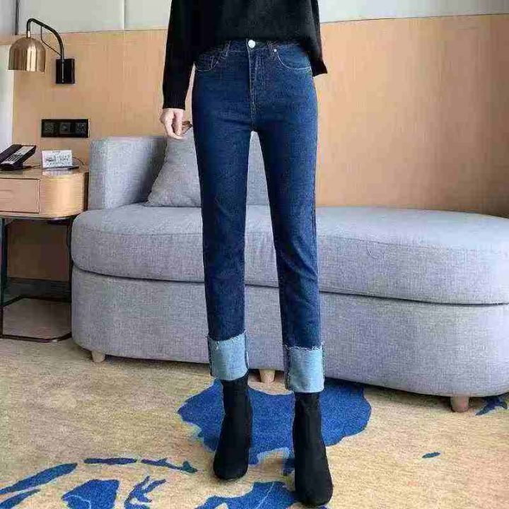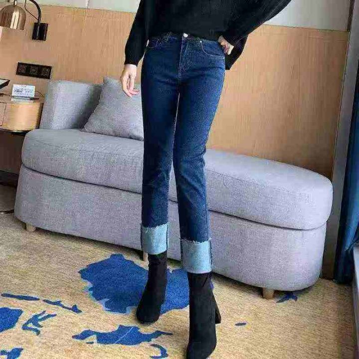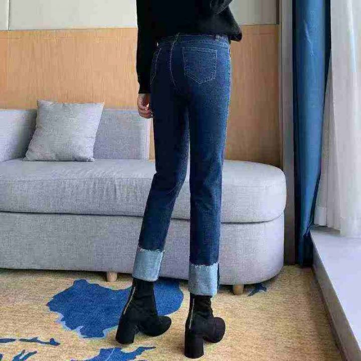 深蓝色牛仔裤春秋新款高腰显瘦弹力卷边cec翻边直筒烟管裤172件,独立包装带吊牌,尺码S~5XL,全清福利价9.8元