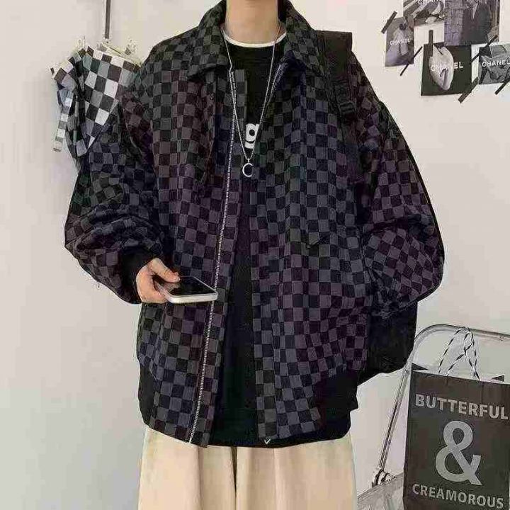 棋盘格外套男春秋季bf潮牌宽松炸街上衣日系复古休闲痞帅工装夹克大版型宽松外套,独立包装,码数M--XXL,总数量260左右,分货➕1