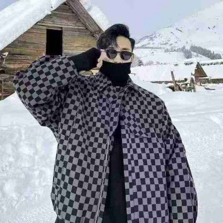 全清12.8棋盘格外套男春秋季bf潮牌宽松炸街上衣日系复...