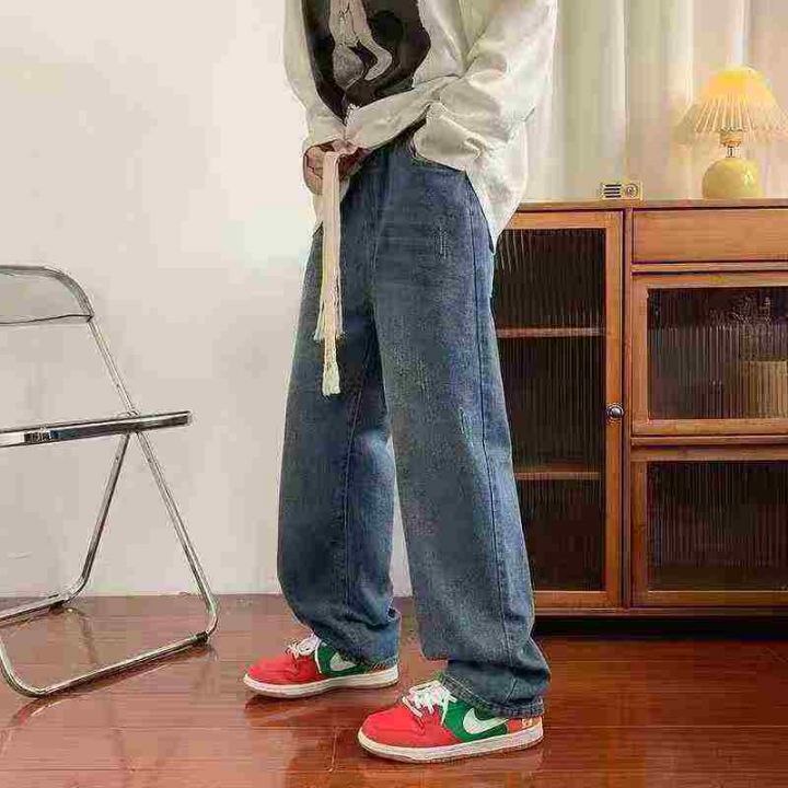 牛仔裤男士春秋款潮牌垂感宽松筒裤秋季纯色休闲直筒百搭裤子,整款2色,蓝...