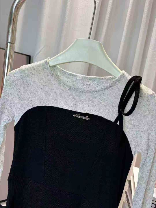 法式气质黑色连衣裙女秋冬季新款韩系假两件针织拼接长袖显瘦裙子 独立包装 码数1-4码 数量255件 全清7.5
