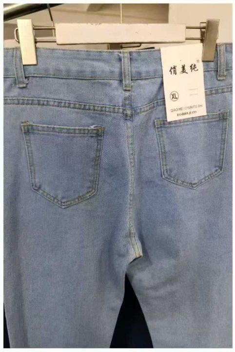 140件左右微瑕女装宽松毛边牛仔九分裤,整款单色,气孔有风痕,不影响品质,码数S-2XL,独立包装