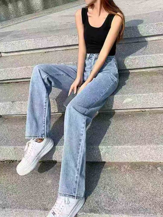 新款爆款高腰牛仔裤女大码宽松直筒裤阔腿裤220件,图...