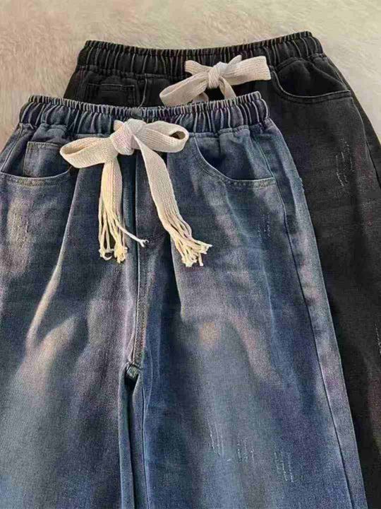 牛仔裤男士春秋款潮牌垂感宽松筒裤秋季纯色休闲直筒百搭裤子,整款2色,蓝色为主,S-3XL码,450件左右,11.8清,分货加1