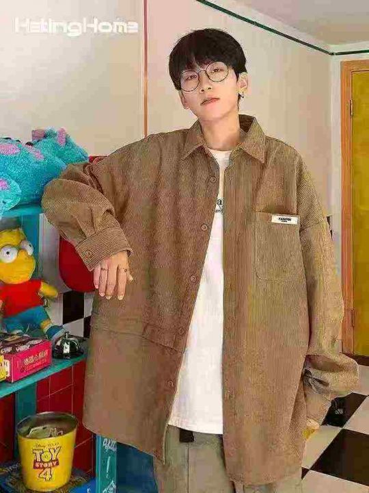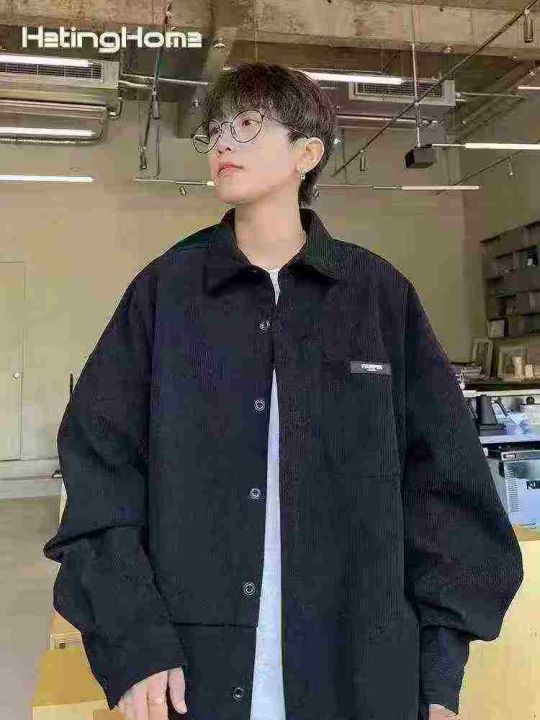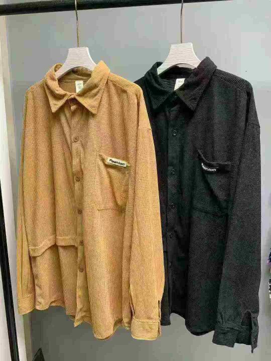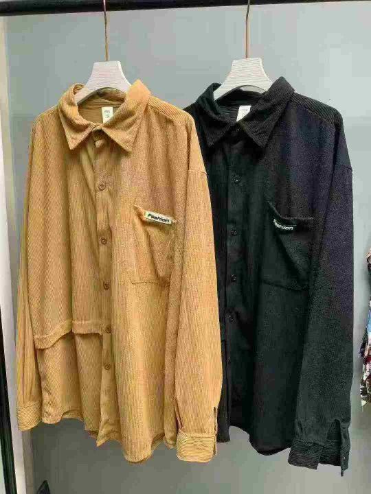 美式复古灯芯绒衬衫男单口袋宽松长袖开衫拼接设计感条绒工装160件,独立包装,尺码M~3XL全清福利价8.8元