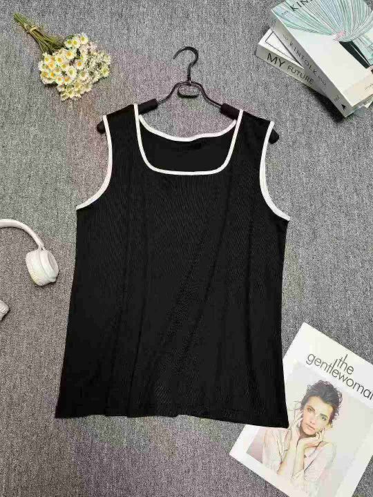 大码辣妹风无袖法式方领背心吊带小衫,整款两色,高弹...