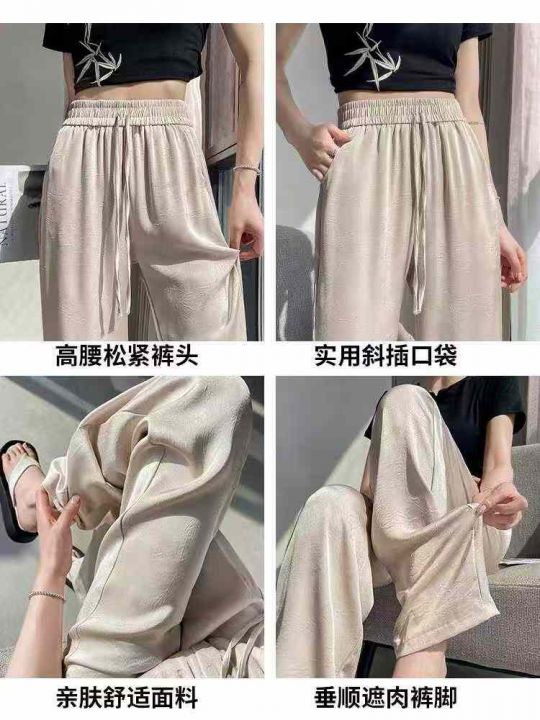 ☕️肌理感冰丝醋酸阔腿裤女夏季裤子垂感拖地休闲直筒裤1124条全清12.8元,...