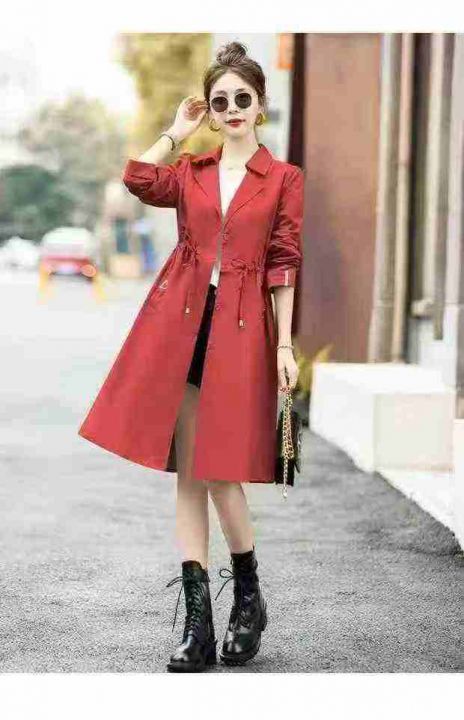 高端精品大牌女装专柜品质.收腰抽绳系带中长款风衣单款两个色M L码43件全...