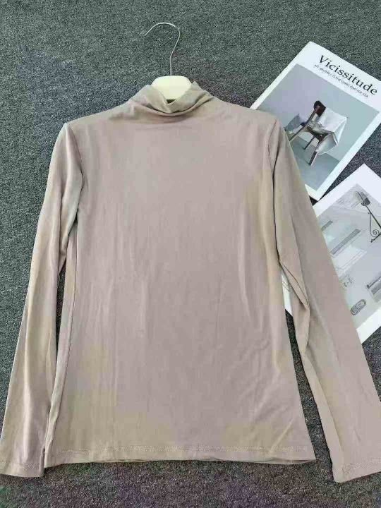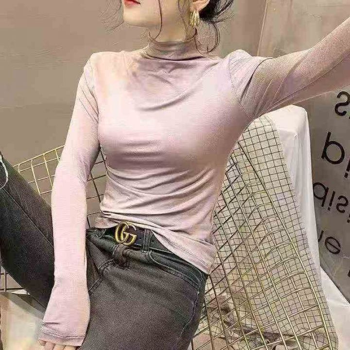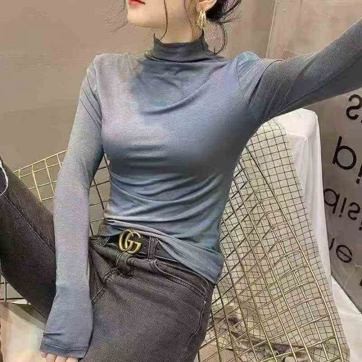 ☕️高弹力面膜打底衫女长袖t恤半高领春秋冬新内搭洋...