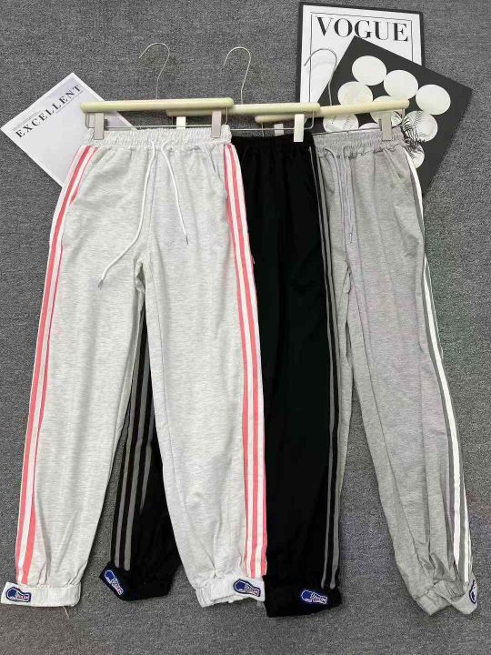 ☕️春秋不加绒卫裤时尚高腰显瘦三道杠条纹束脚运动卫...